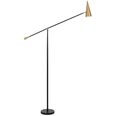 Inspired by the 1950's this satin brass and black floor lamp has a simple line, typical of the European design of this period, and 70 years later, we still produce it.