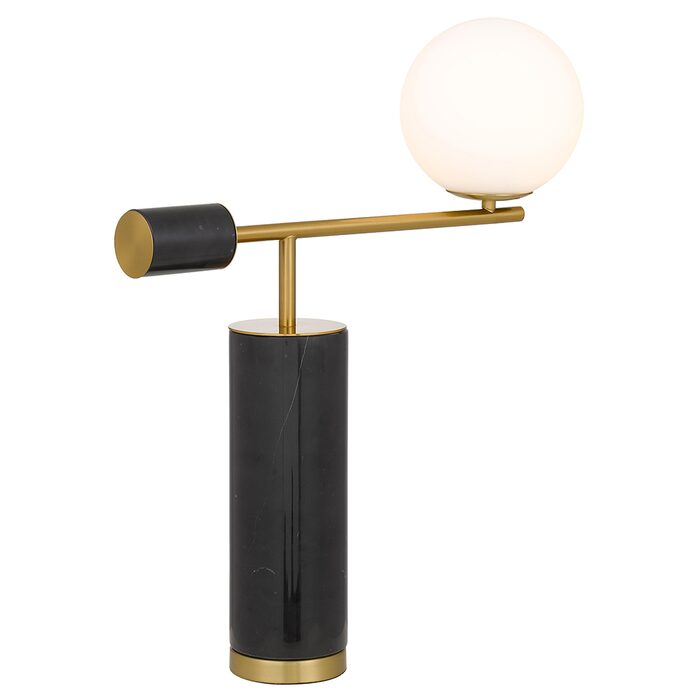 Opal matt glass gleams a diffused glow contrasted by a sleek brushed brass rod atop a black marble base to complete it's timeless appeal.