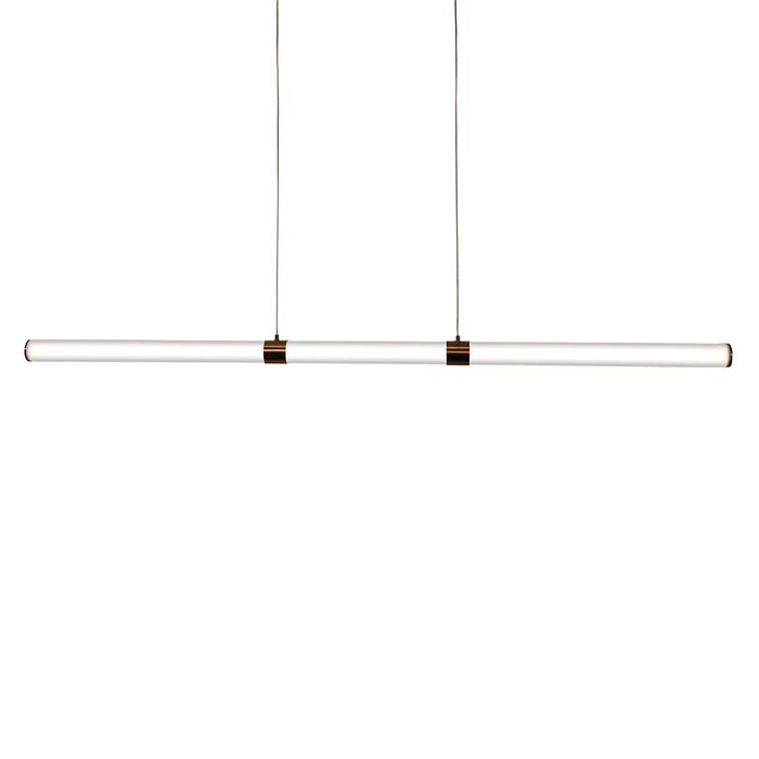 The KALLITA is an elegant pendant, featuring an opal matt acrylic tubular diffuser with bronze plated highlights.