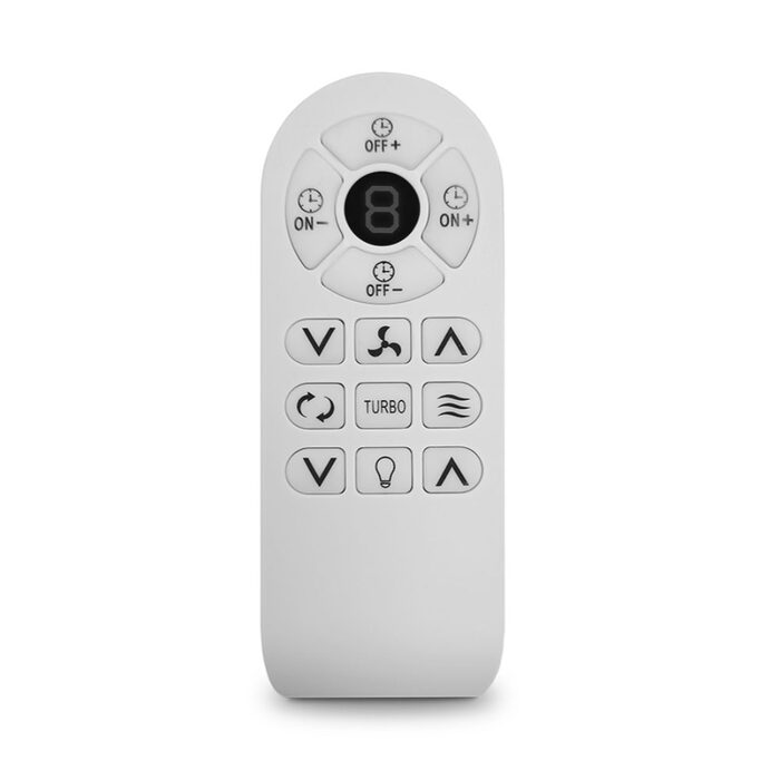 - Supplied with 8 speed remote including turbo speed function and up to 12h timer