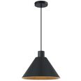 The Kestra pendant features a conical shape with a subtly textured iron surface, adding a sophisticated touch to any room.