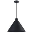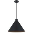 The Kestra pendant features a conical shape with a subtly textured iron surface, adding a sophisticated touch to any room.
