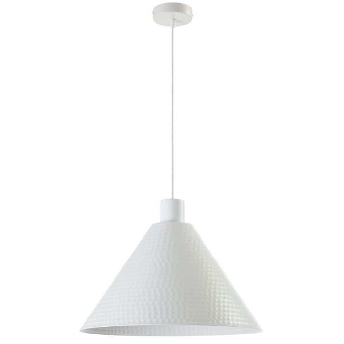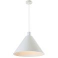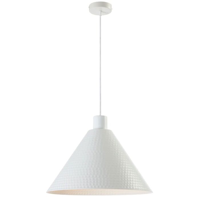 The Kestra pendant features a conical shape with a subtly textured iron surface, adding a sophisticated touch to any room.