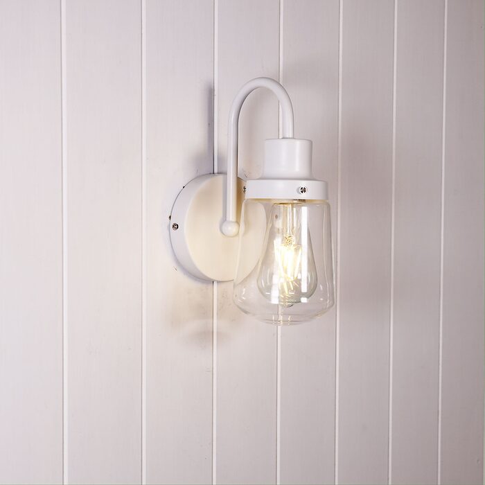 Retro styled wall light with a clear glass. A simple and practical wall light, which looks great with an LED filament bulb.