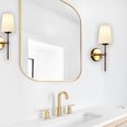 The Kinbury metal wall light features a tapered glass shade, perfect for either side of a bed head.
