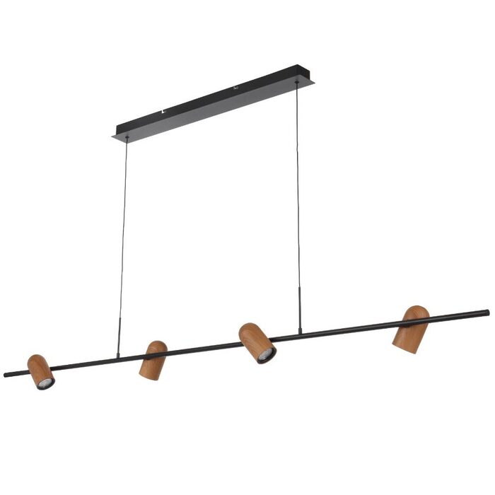 Each fitting has adjustable shades, combining the durability of iron with the warm, natural aesthetic of wood, making it a versatile and elegant addition to any interior space.
