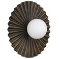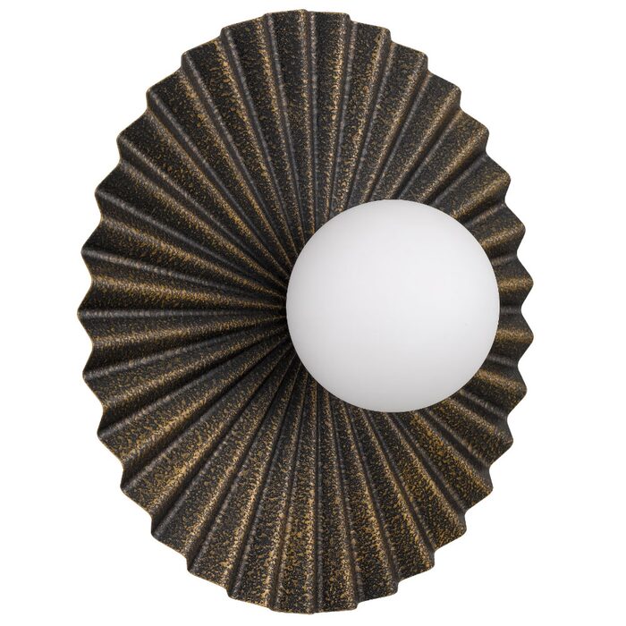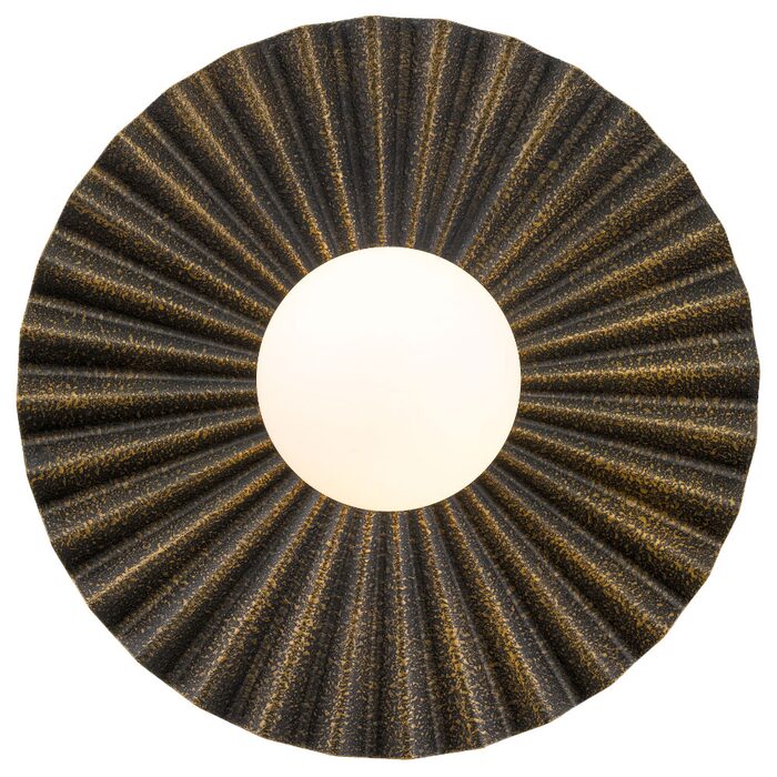 Its sculptural, pleated form radiates outward, complementing a central illuminated globe for a dramatic effect.