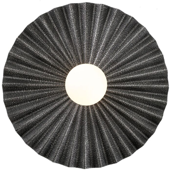 Its sculptural, pleated form radiates outward, complementing a central illuminated globe for a dramatic effect.
