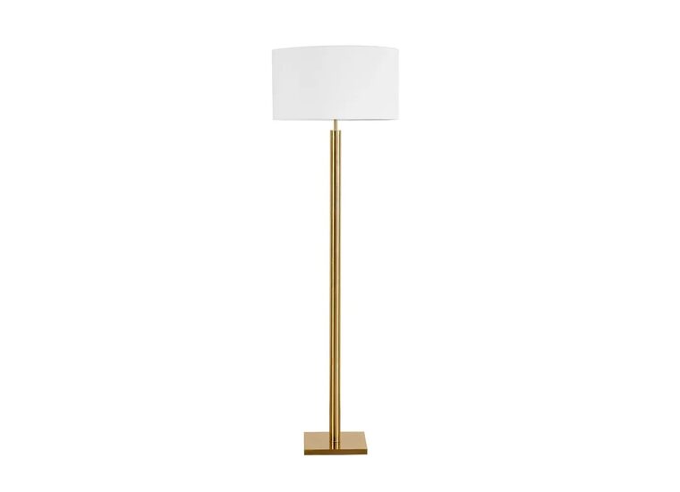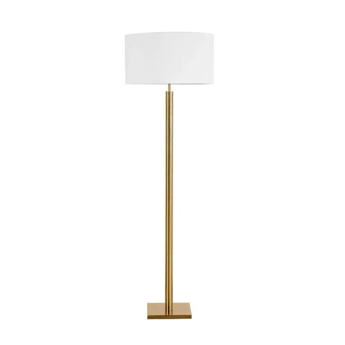 The Kirkwall Floor Lamp is a contemporary lighting piece available in sleek black or antique brass finishes, designed to bring understated elegance to modern interiors.