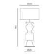 Kitta Ponn is a tall table lamp with a vibrantly coloured glass base that prominently features a composition of mixed forms.