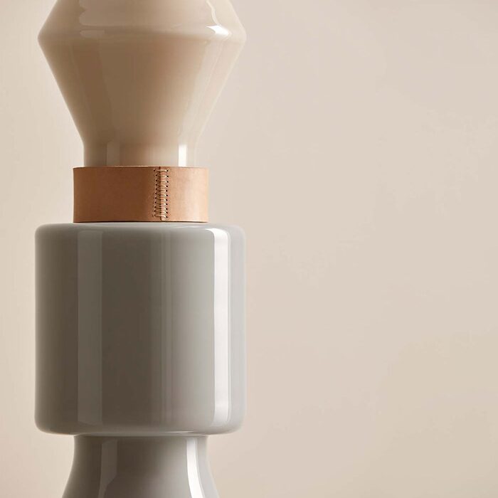 In the middle of the base sits a leather ornamentation that visually separates the Ash Grey base from the top Silhouette finish.