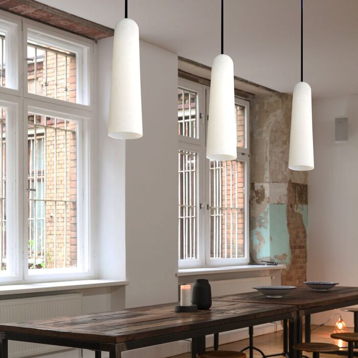 Versatile and enlivening, this unique Pendant, providing illumination with its unique aesthetic, is a trendy decorative piece during the day and an essential source of ambient lighting by night, representing the expressive language of modern and contemporary architecture.