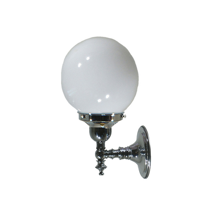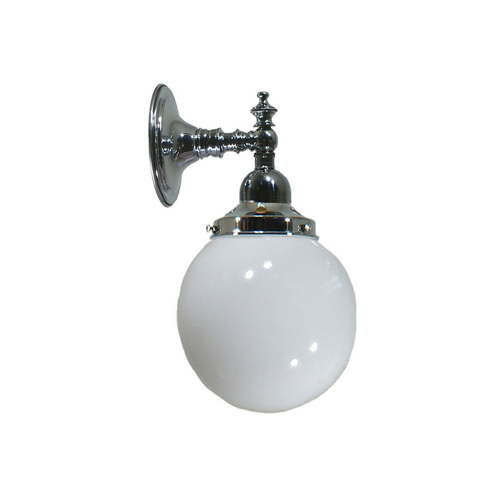 Traditional chrome wall light with an upward facing 6" opal glass.