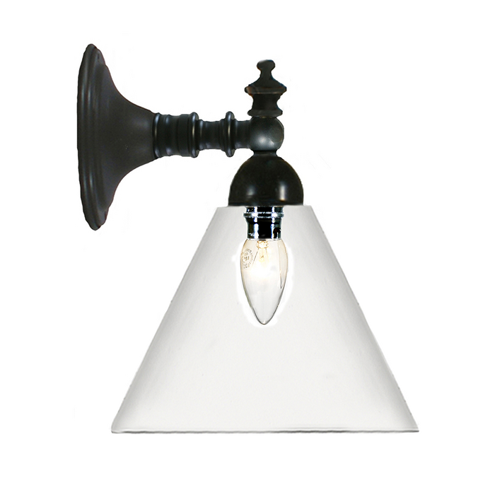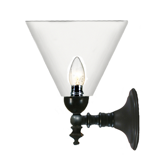 Traditional patina wall light with an upward or downwards facing clear glass.