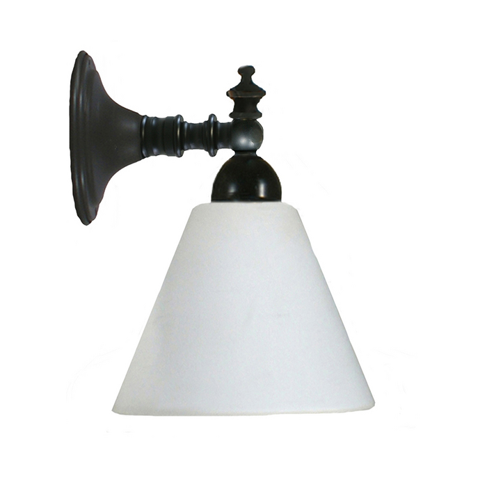Traditional patina wall light with an upward or downwards facing opal glass.