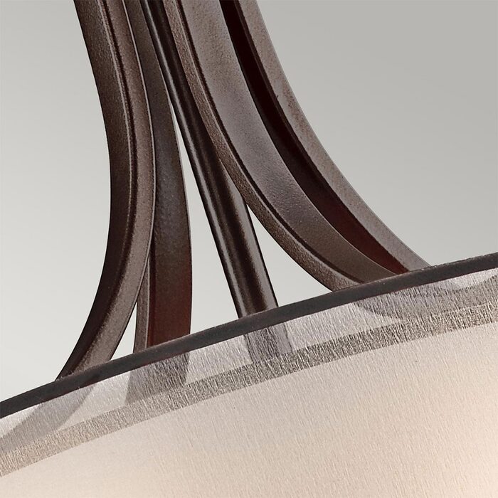 It starts with a bold, unadorned rounded-arm styling. It finishes with avant-garde double shades made of decorative meshed screens and opal inner glass.