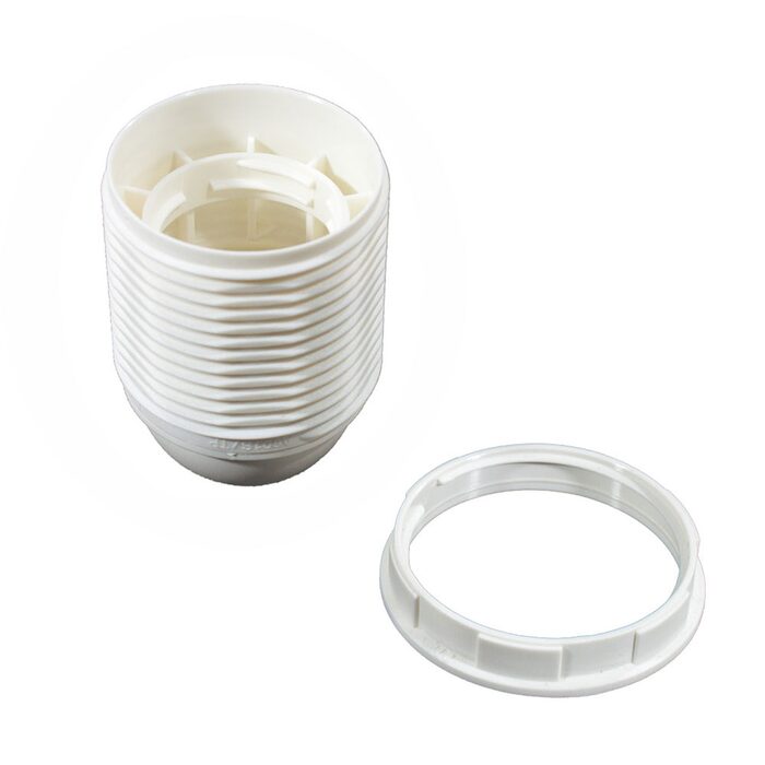 10mm thread ES lampholder. White E27/ES lampholder with 10mm thread.