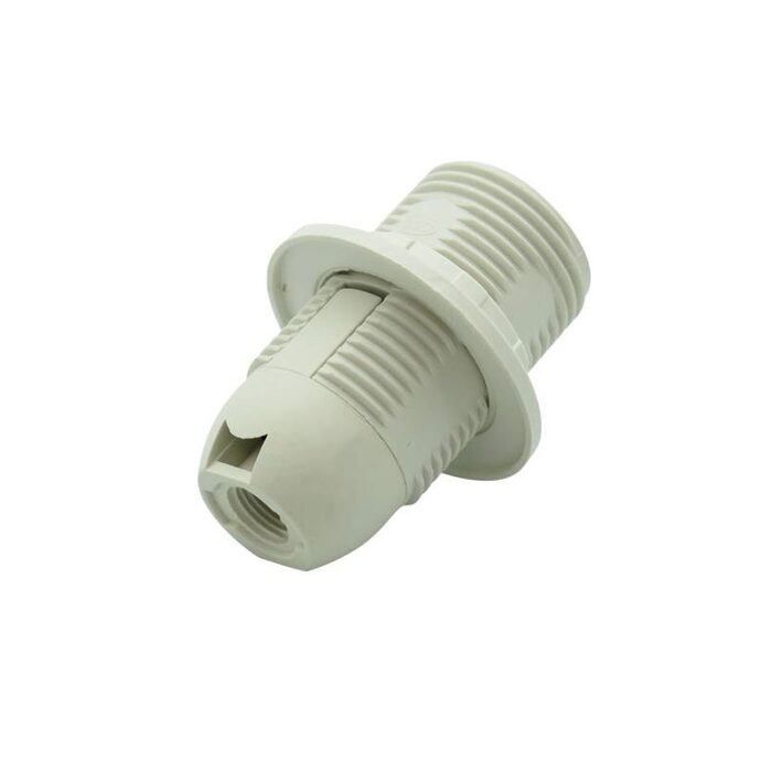 10mm thread SES lampholder. White E14/SES lampholder with 10mm thread and removable threaded skirt for shade attachment.