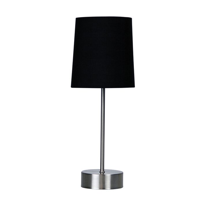 LANCET ON-OFF touch base in brushed chrome with a coloured poly-cotton fabric shade. It is the perfect addition to any bedside table.