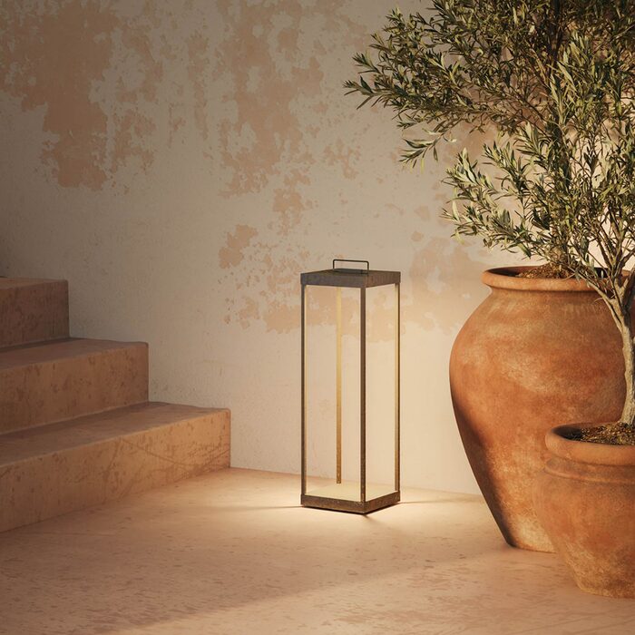 The brass lanterns in the collection feature subtle and elegant lines. The antique brass structure makes them ideal for more natural settings.
