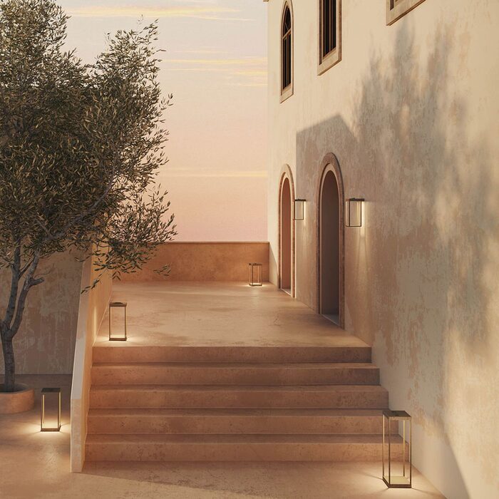 The brass lanterns in the collection feature subtle and elegant lines. The antique brass structure makes them ideal for more natural settings.