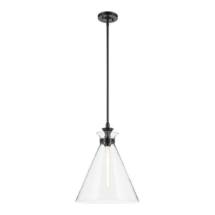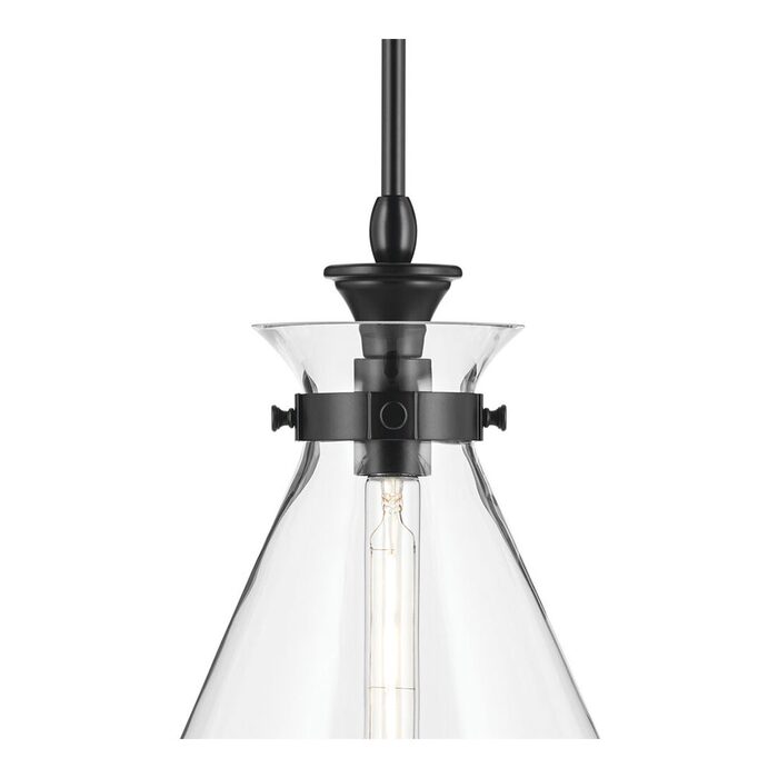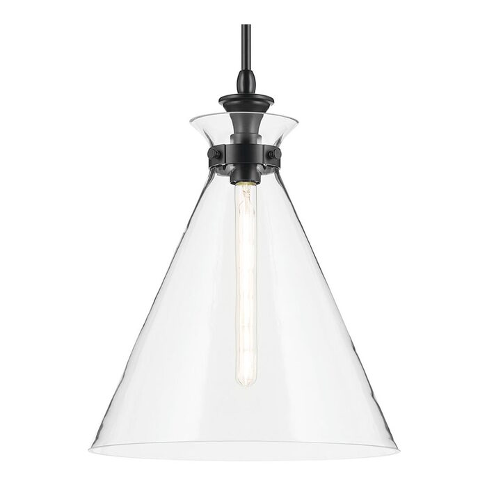 The canopy features a soft, subtle curvature for added detail. Clear glass allows the bulb to show through for a truly refined look.