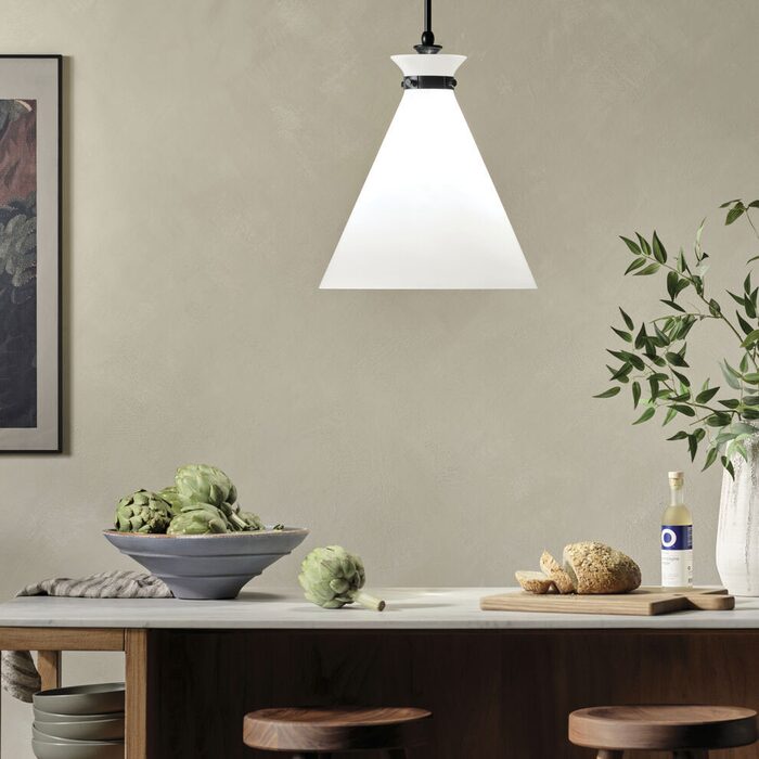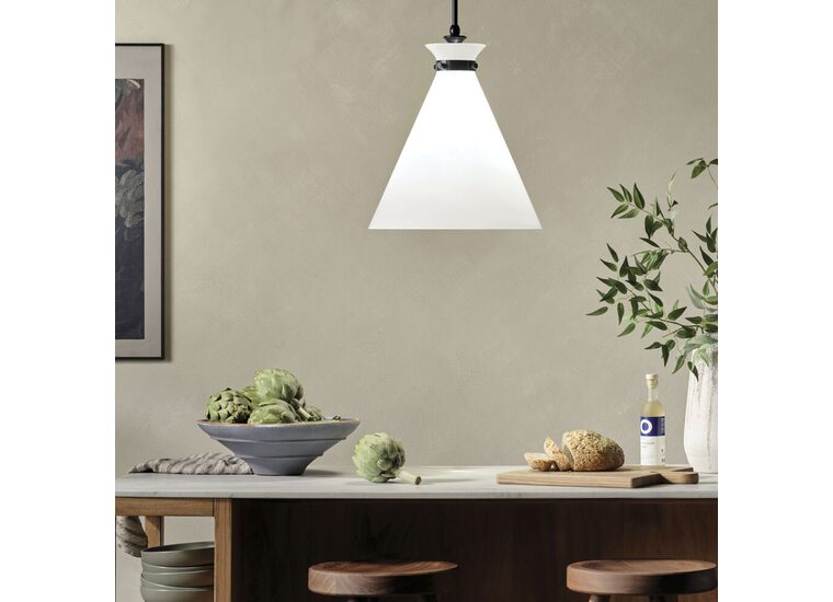 The canopy features a soft, subtle curvature for added detail. Opal glass gives it a milky white silhouette for a truly refined look.