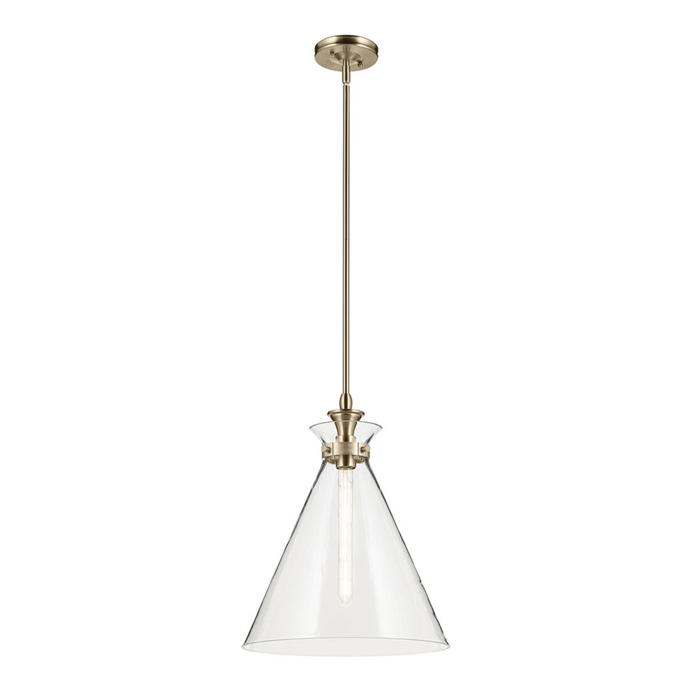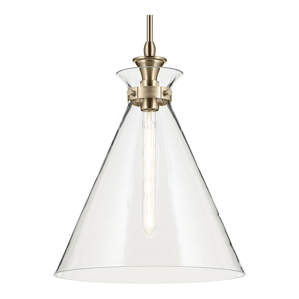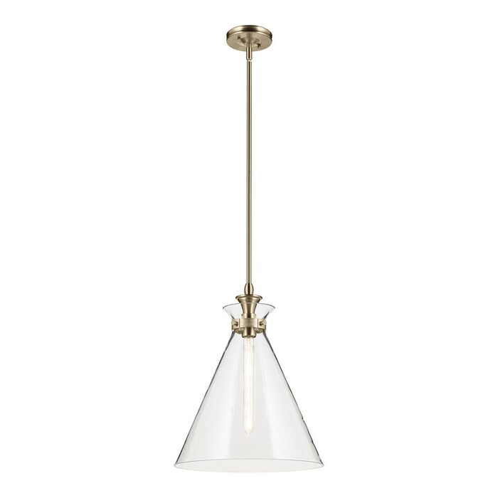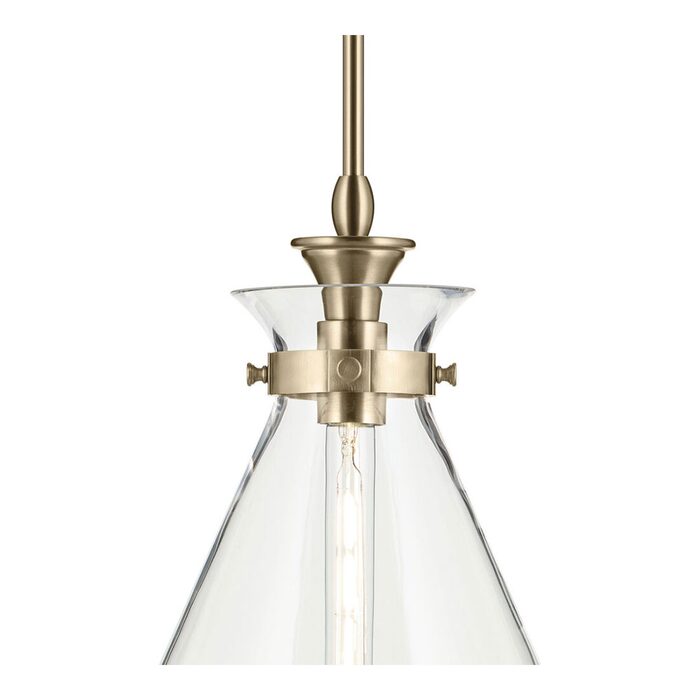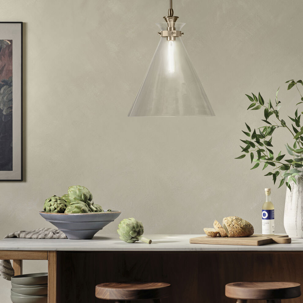 The canopy features a soft, subtle curvature for added detail. Clear glass allows the bulb to show through for a truly refined look.
