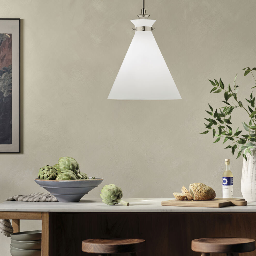The canopy features a soft, subtle curvature for added detail. Opal glass gives it a milky white silhouette for a truly refined look.