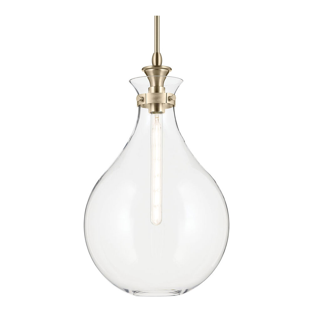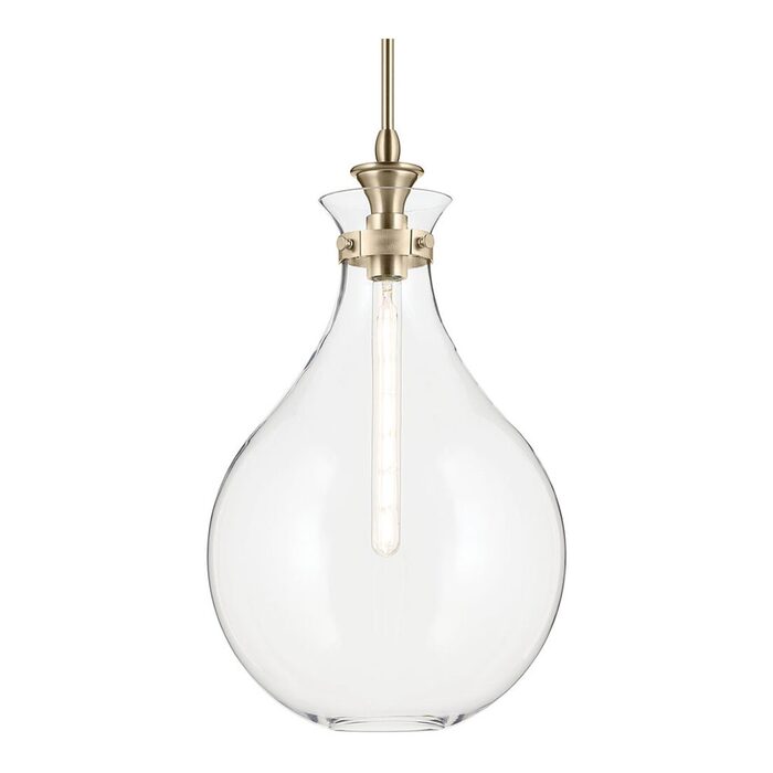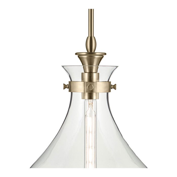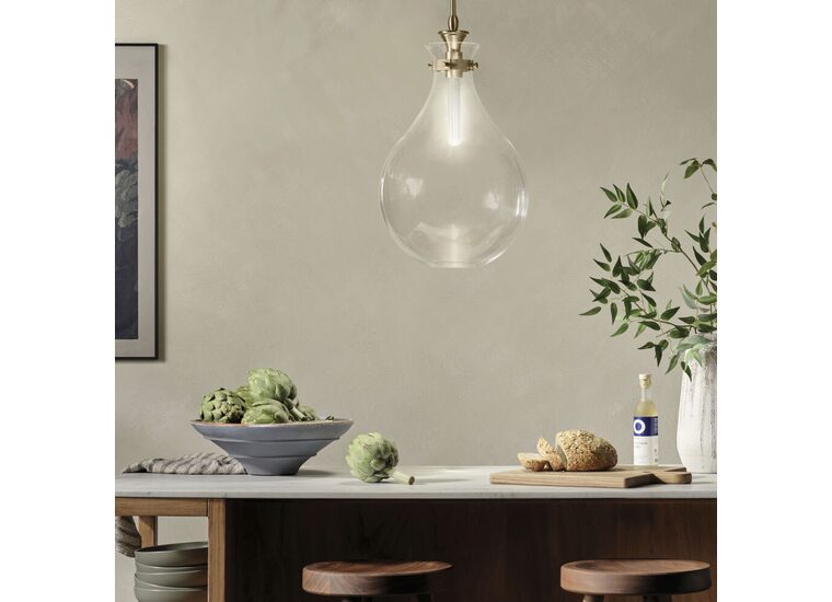 The canopy features a soft, subtle curvature for added detail. Clear glass allows the bulb to show through for a truly refined look.