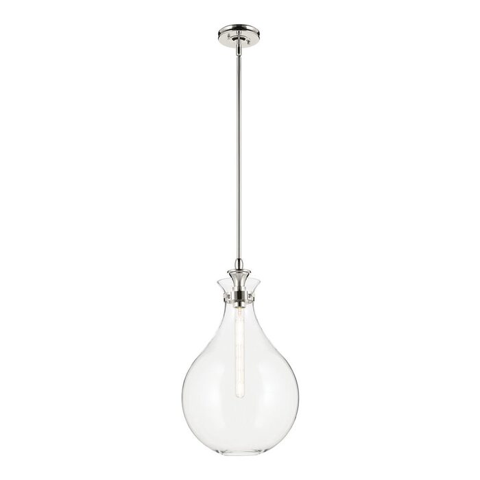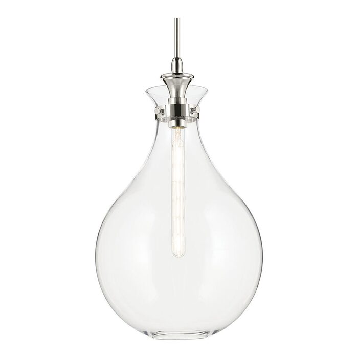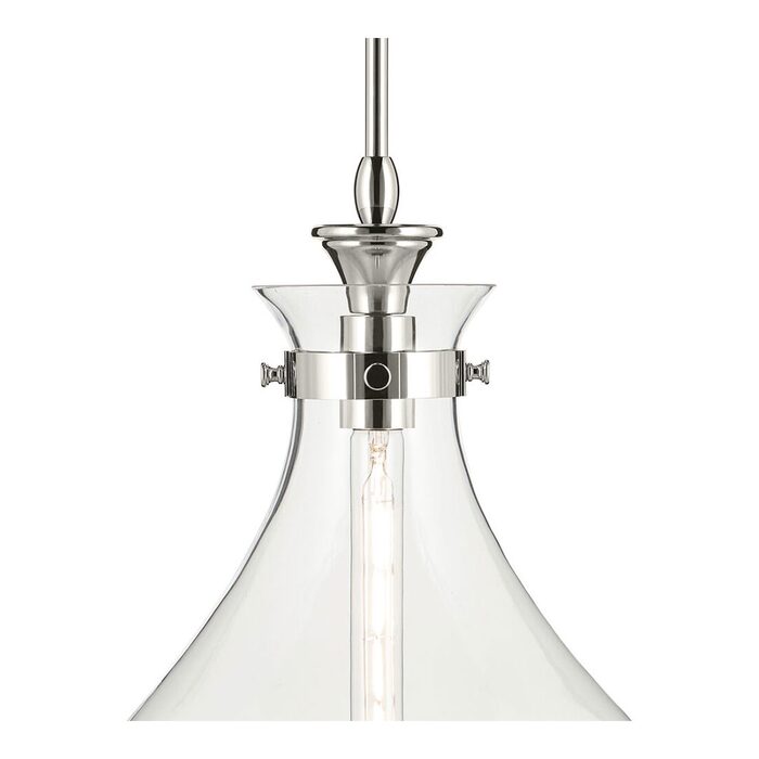 The canopy features a soft, subtle curvature for added detail. Clear glass allows the bulb to show through for a truly refined look.
