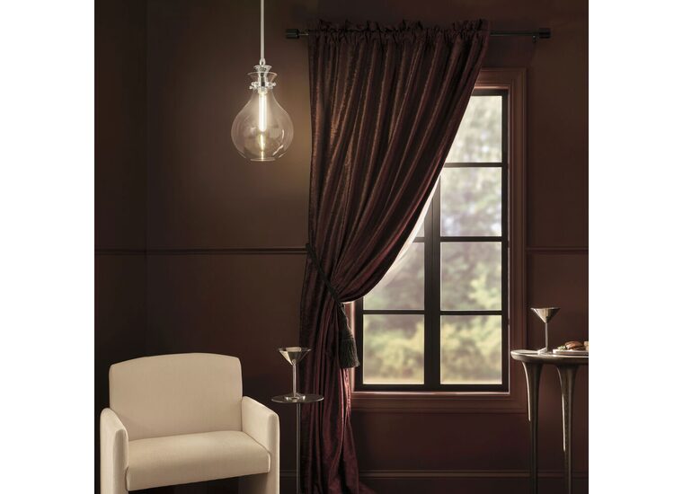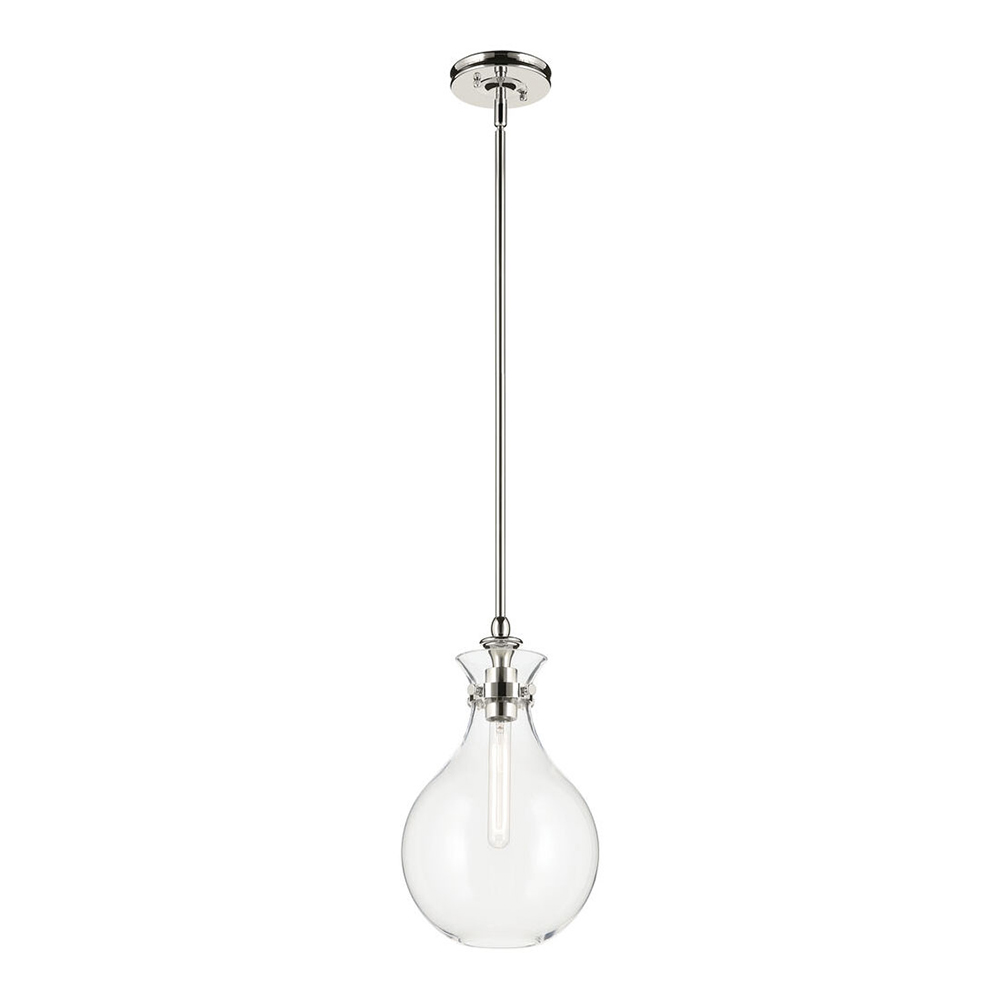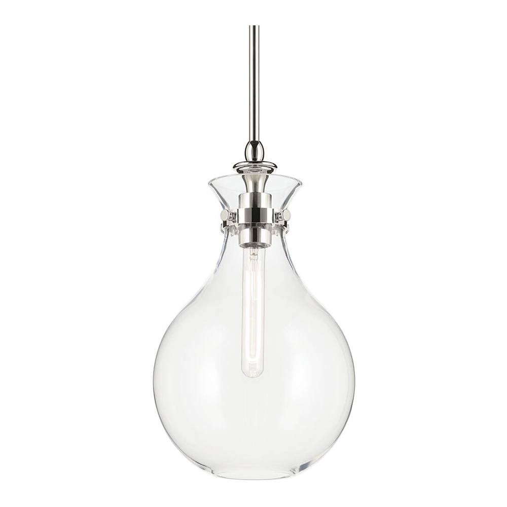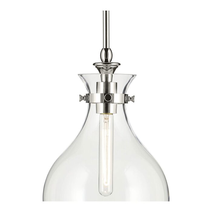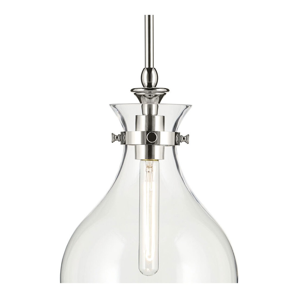 The canopy features a soft, subtle curvature for added detail. Clear glass allows the bulb to show through for a truly refined look.