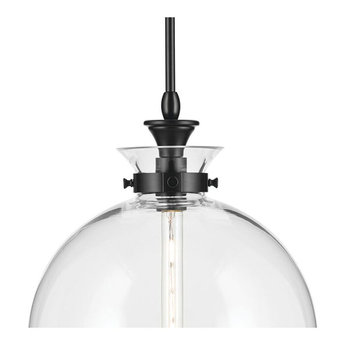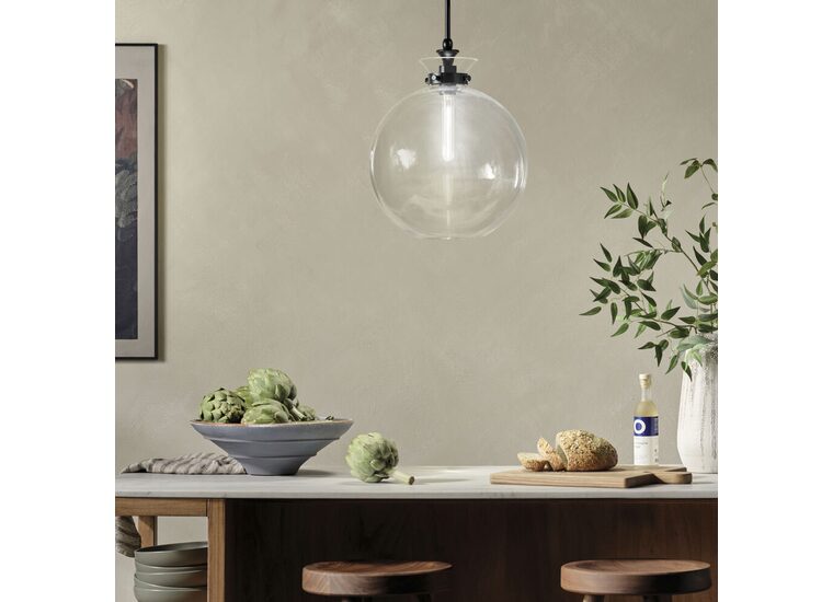 The canopy features a soft, subtle curvature for added detail. Clear glass allows the bulb to show through for a truly refined look.