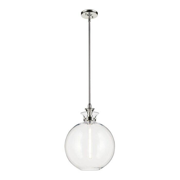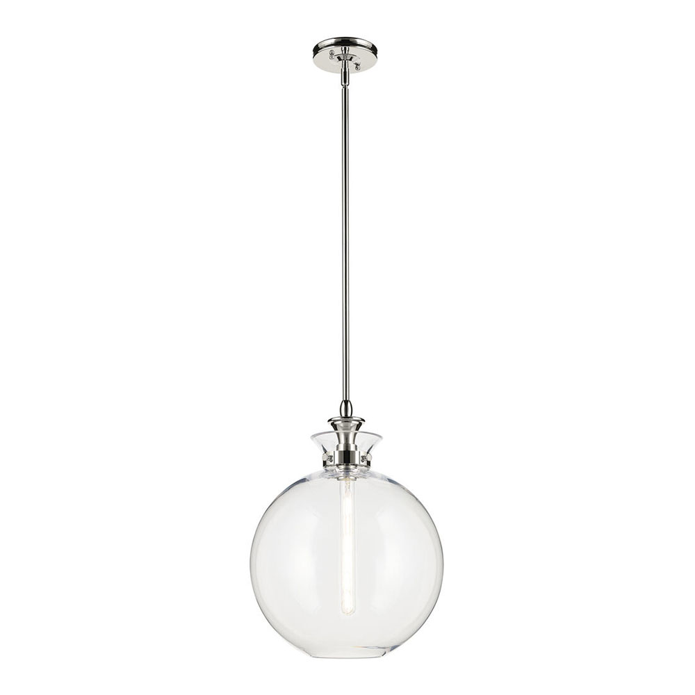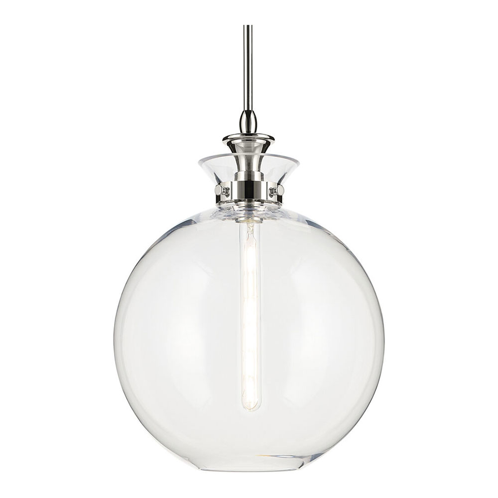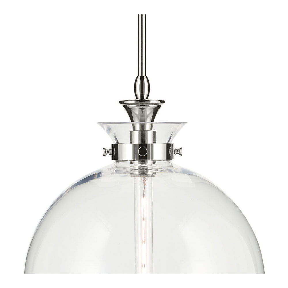 The canopy features a soft, subtle curvature for added detail. Clear glass allows the bulb to show through for a truly refined look.