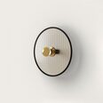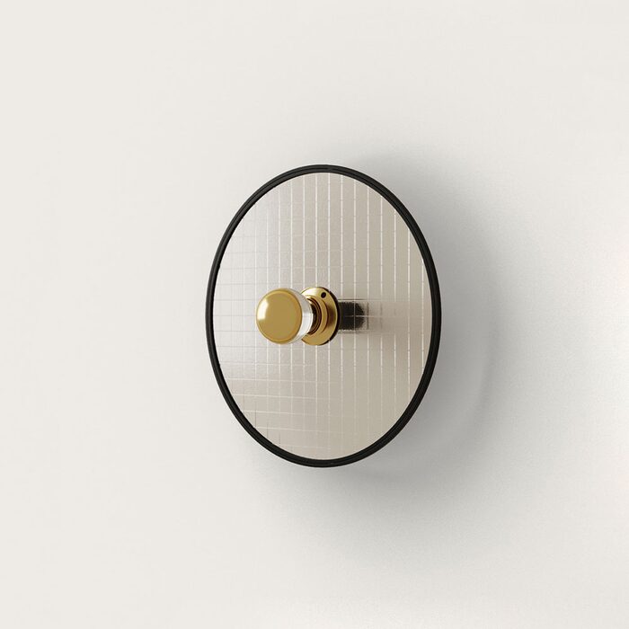 Lass Wall Light by Aromas Del Campo offers an alluring artistic feature, where a soft patterned light glows from behind the circular textured glass shade.