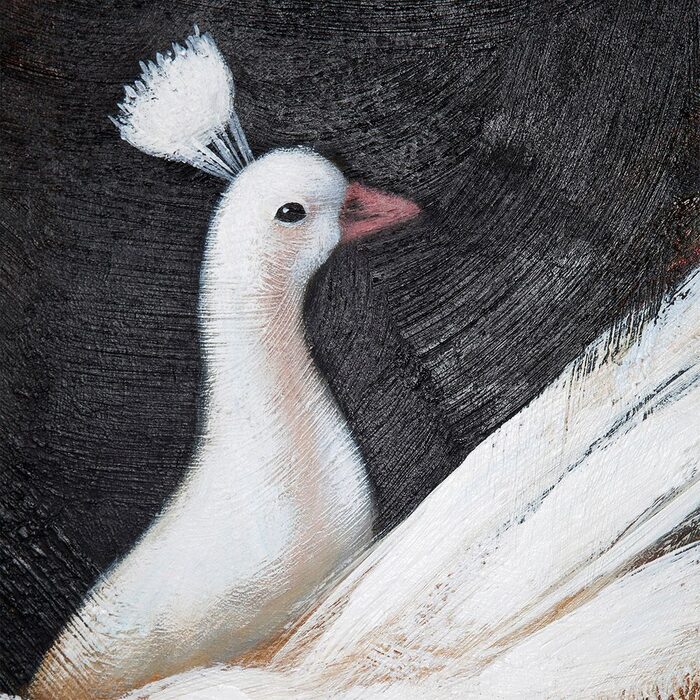 Symbolising beauty, grace, integrity and courage, the Le Grande Peacock oil on canvas painting creates a striking backdrop at 148 x 118cm.
