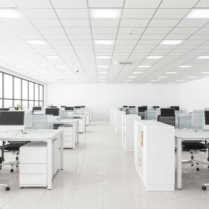 - Indoor ceiling recessed lamp with integrated LED sources and direct light emission