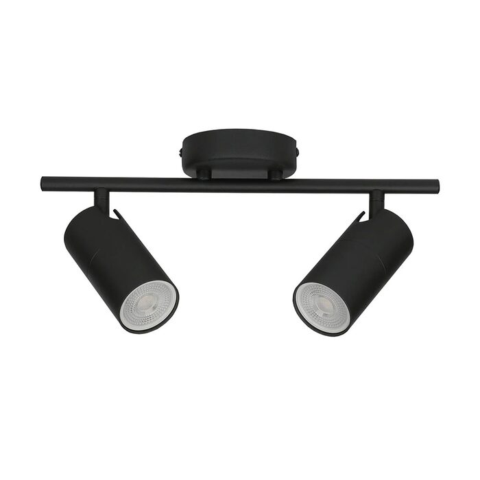 The Lengan Double Head Adjustable Round Base Spot Light in black provides precise directional lighting with an understated, modern design.