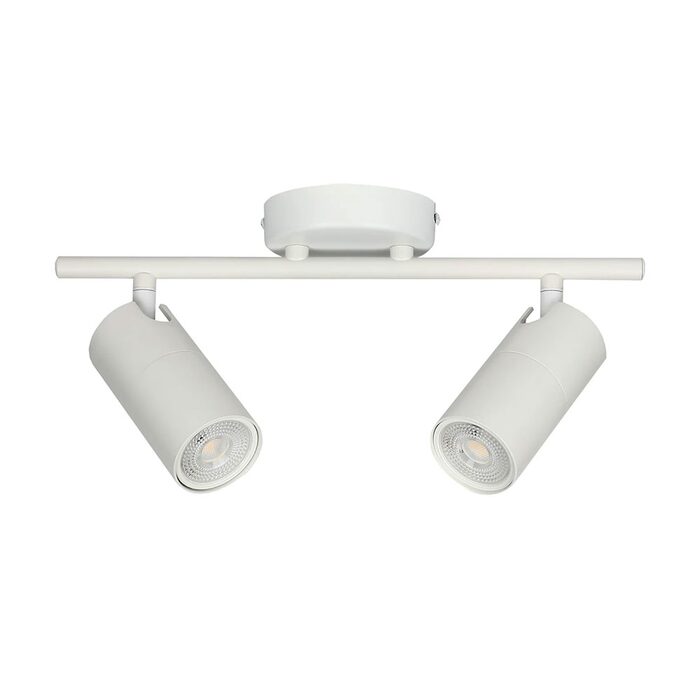 The Lengan Double Head Adjustable Round Base Spot Light in white provides precise directional lighting with an understated, modern design.