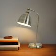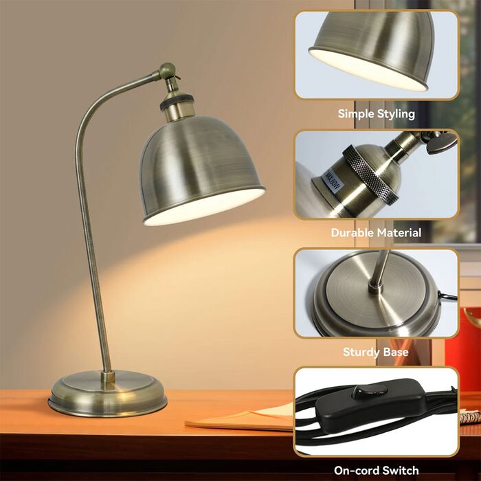 The pewter and antique brass varieties are throughout the fitting, whereas the red and white options have a coloured base and shade with an antique brass lamp pipe separating the colours.