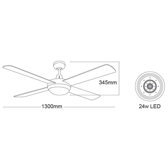 - Ceiling to Fan Bottom: 345mm