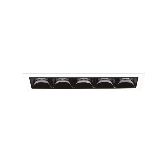 Family of recessed rectangular LED modules in die-cast aluminum, painted black or white with shiny black polycarbonate reflector.