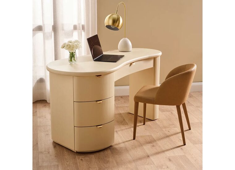 The Lina Desk in bone Ivory offers a soft, refined take on contemporary design.