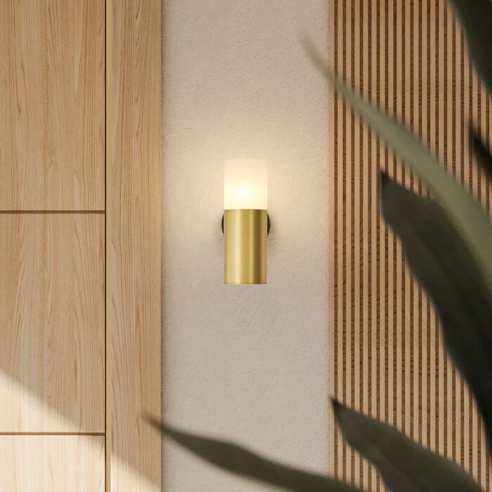 The Lind Wall Light stands out with its meticulously chosen combination of materials and finishes. It features a matte black base, a matte gold finish structure, and an alabaster diffuser. This diffuser houses an LED source, providing soft ambient lighting perfect for corridors, hallways, and various spaces in the home, as well as in hospitality settings.