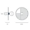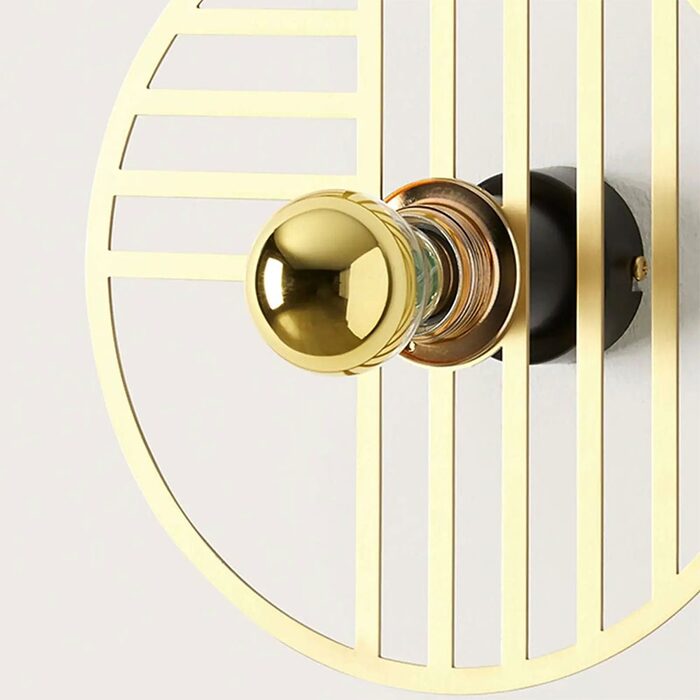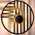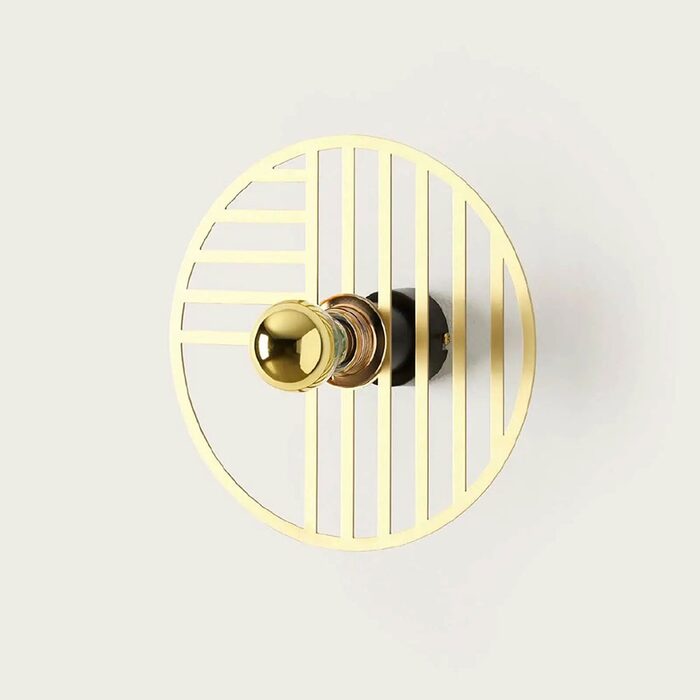 Line is a round steel wall lamp with geometrical patterns within the circular frame.