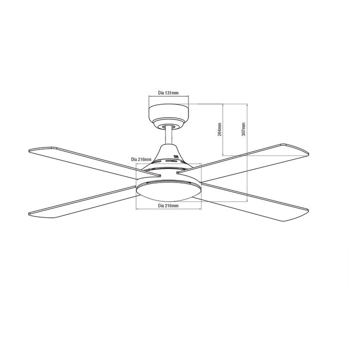 - 1220mm (48”) 4 Blade AC Ceiling Fan