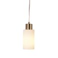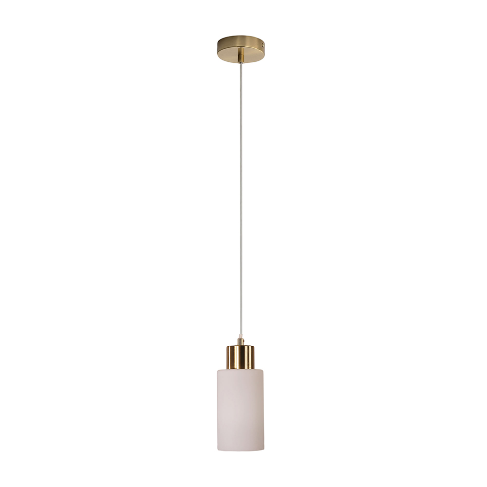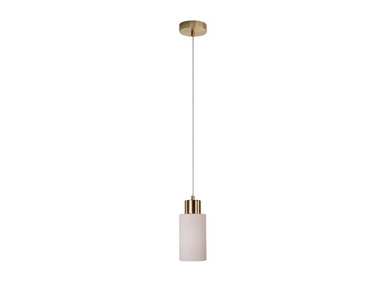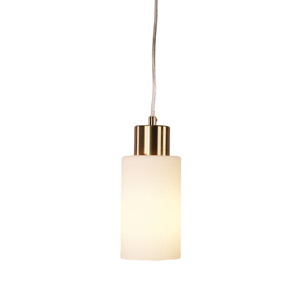 The LISA pendant in satin brass metalware with a opal matt glass shade.