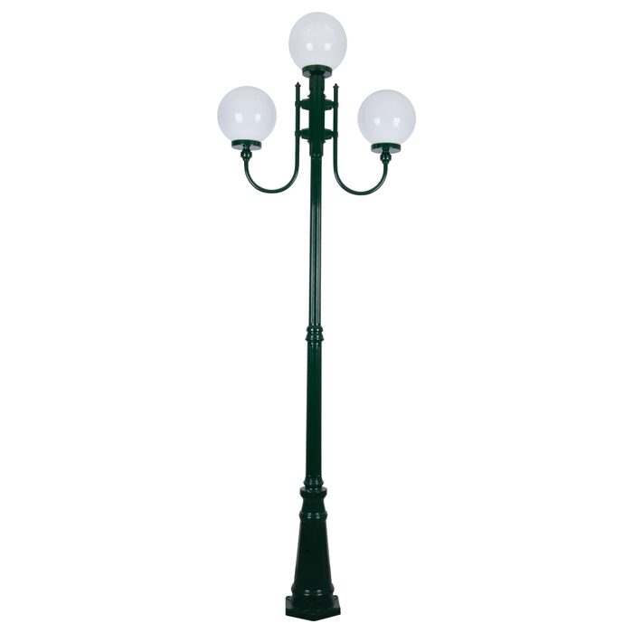 Lisbon Triple 25cm Spheres Curved Arms Tall Post Light Green - 15749