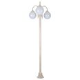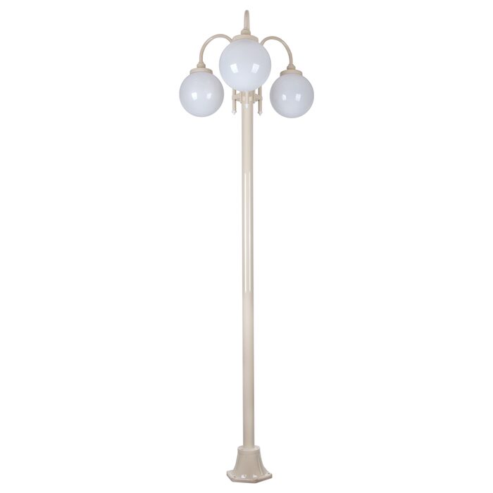 Lisbon 3 light curved arm 2.4m triple head down facing post light, die-cast aluminium body complete with 250mm opal acrylic sphere. Made in Italy, assembled and powder coated in Australia.