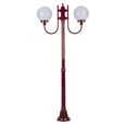 Lisbon 2 light curved arm 1.94m twin head post light, die-cast aluminium body complete with 250mm opal acrylic sphere. Made in Italy, assembled and powder coated in Australia.